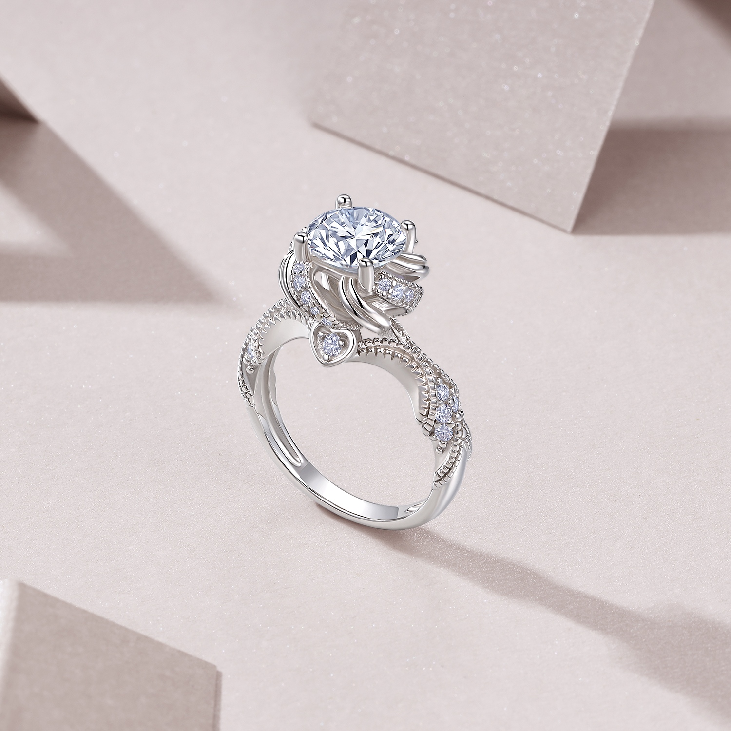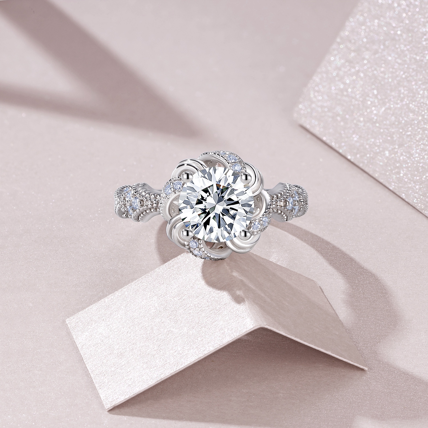 2-carat Luxury Fashion Minimalist Trend Jewelry Silver Ring Set With Top-quality Moissanite, Made Of S925 Silver With Electroplated Platinum.